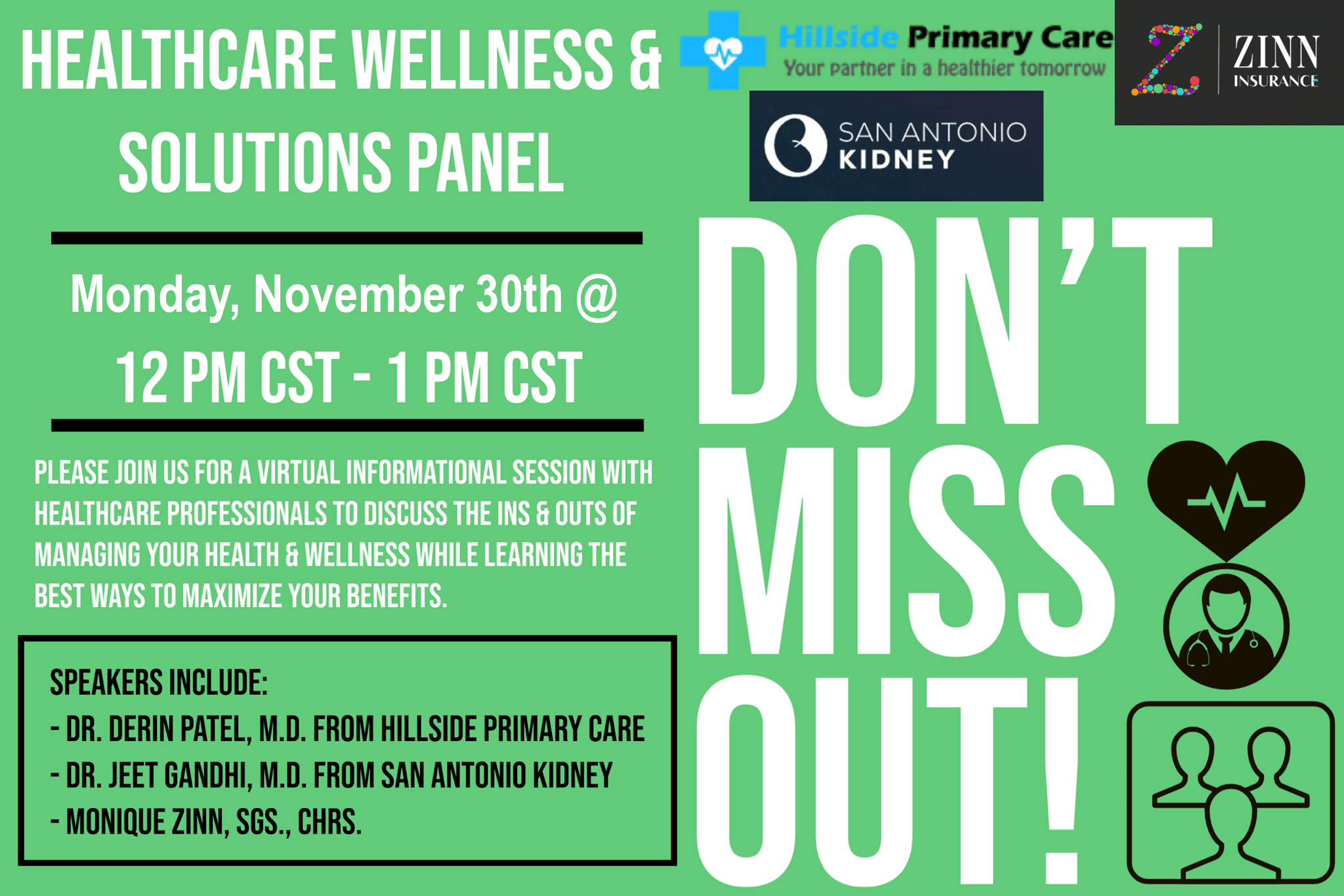 You are invited to join us for our Healthcare Wellness & Solutions panel on November 30th from 12PM CST to 1PM CST.
