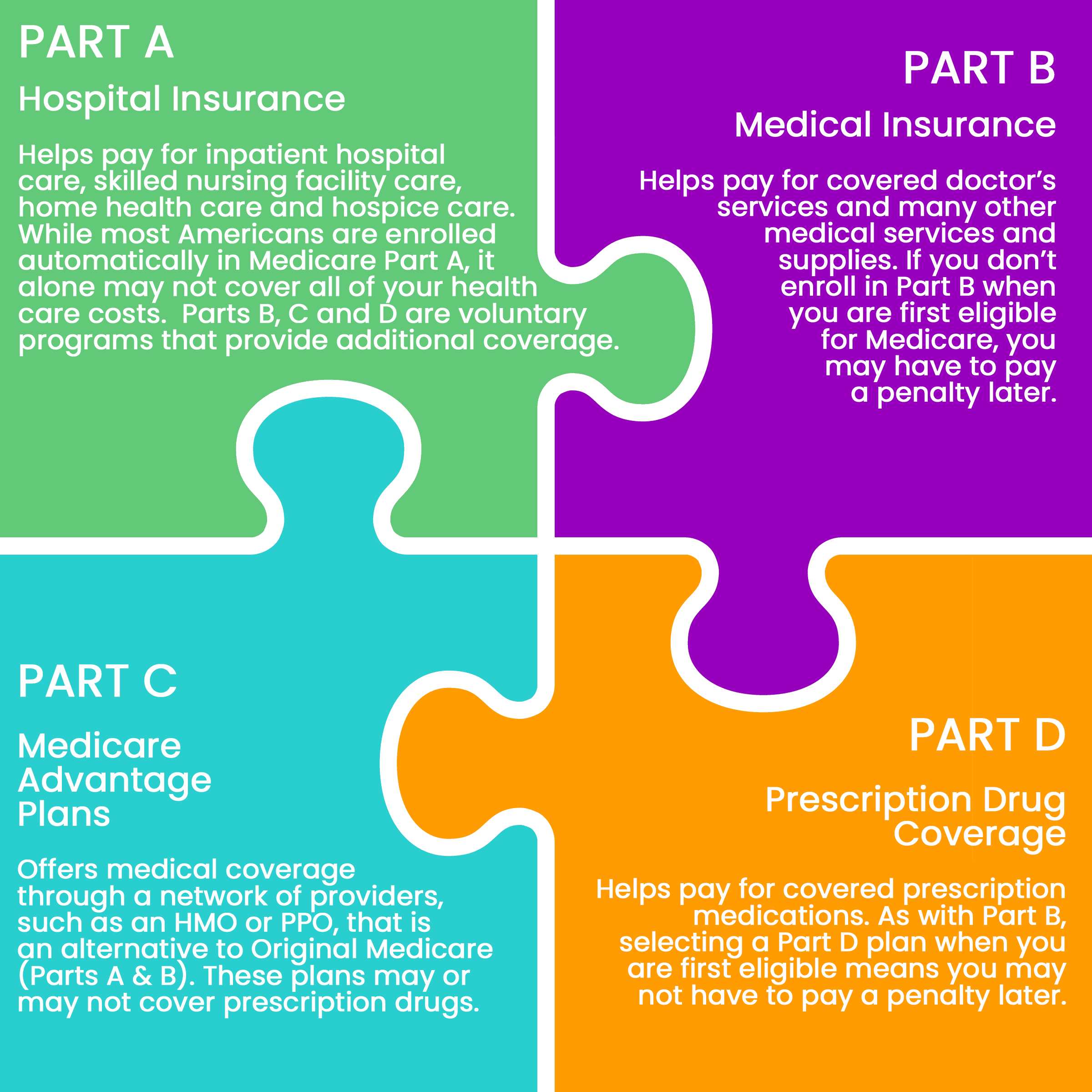 Medicare is the nation’s largest health insurance program, covering health care services such as hospital stays, skilled nursing and physician services for millions of Americans. There are four parts to Medicare, each providing different types of health care services.